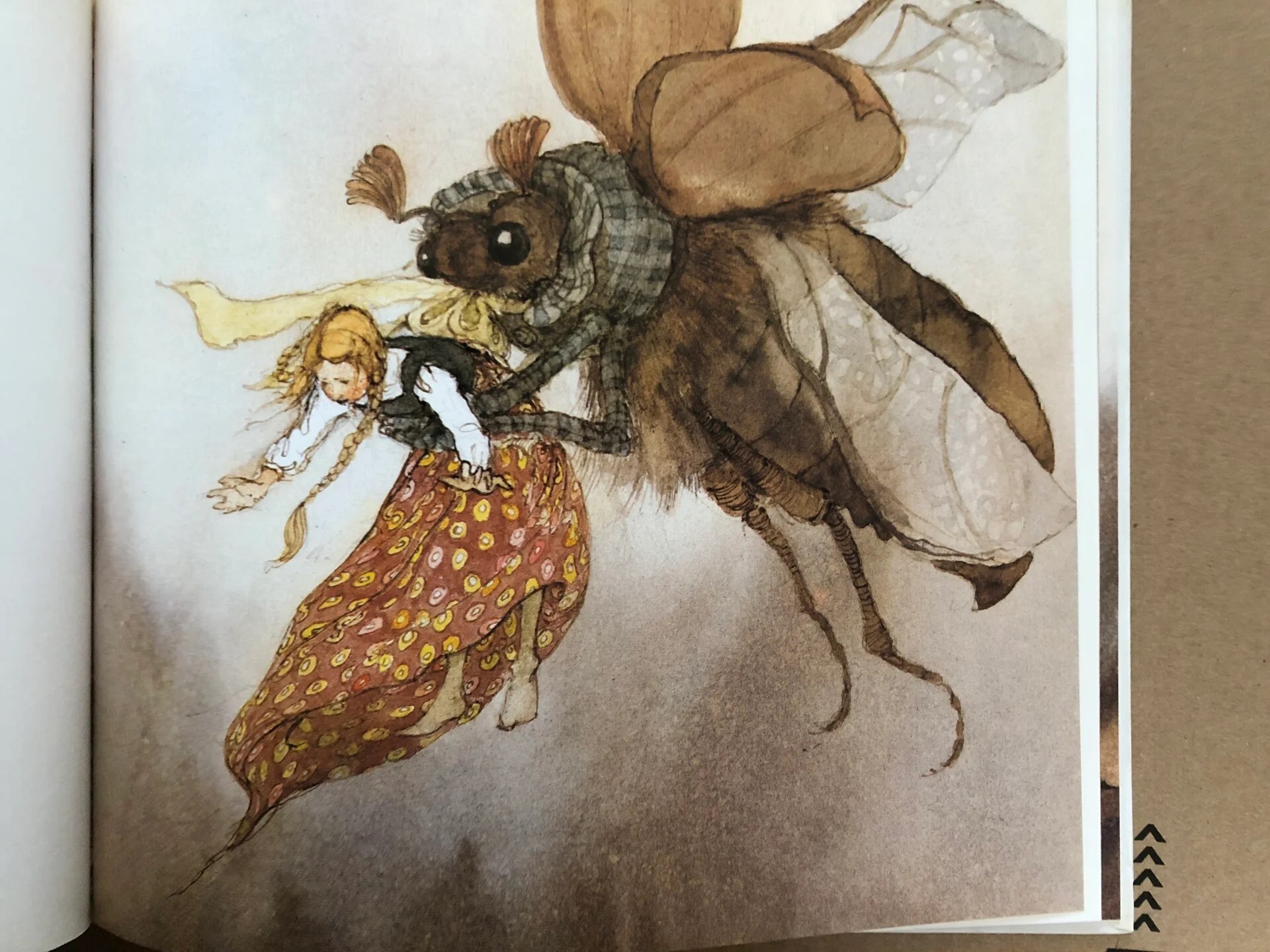 ‘Je moet geen ‘Duimelijntje’ genoemd worden, nu zij kon zij vliegen van bloem tot bloem krijgt ze een nieuwe naam van de bloemengel. ‘Maja’ wordt haar nieuwe naam.